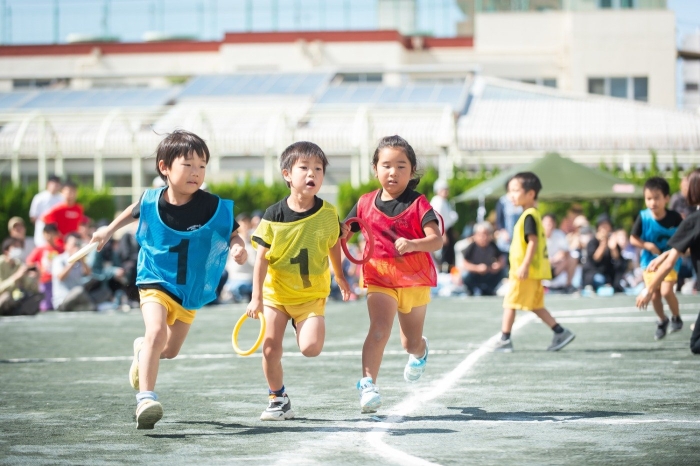 3年ぶりに全園児で行う運動会がありました。場所は隣の小学校の校庭ということで、いつもと違う場所に戸惑うお子さまもいれば「わ~!!ひろい!」と喜ぶ声も聞こえてきました。