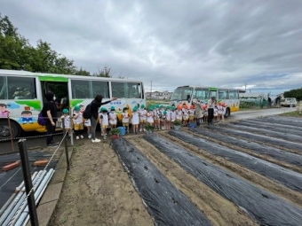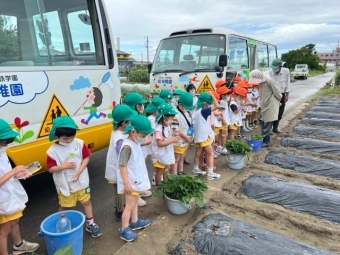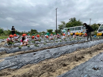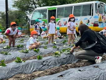 この日はお天気の心配がありましたが、畑に着くと雨が上がり、気持ちのよい気候になりました。畑のおじさんとおばさんに教えてもらいながら、大切に苗を植えました🌱