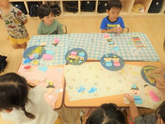 7月7日の「たなばた」って何?の小さいクラスのお子さま達は先生から七夕の話を聞いてから七夕飾りの製作を始めました。各学年がそれぞれの飾りを保育室に飾り、「みんなのお願い事がお星さまに届いてかなえてもらえるといいね!」と話をしました。七夕当日どのお子さまも嬉しそうに飾りを持ち帰りました。