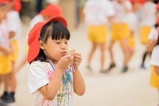 お家の人が見に来てくださり、いつも以上に張りきっていたお子さまやドキドキ緊張した表情のお子さまなど・・・最後には、頑張ったご褒美の金メダルを胸にかけてもらい誇らしげな表情を見せてくれました✨
