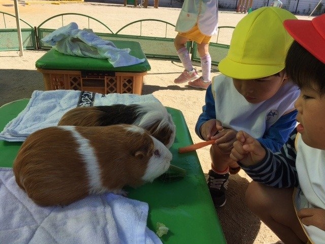 おけから脱走するカメさんをおけに戻すことに必死なお子さまや自分の背より大きなヤギさんに「かわいい~!」と平気で近寄っていたお子さまもいました。かわいい動物たちにたっぷり癒され、いっぱい優しく触れ合うことができました🐰