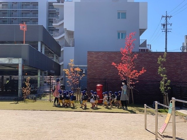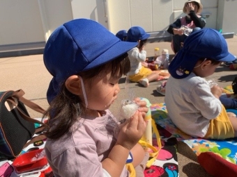 2歳児クラスのうみ組さんは他の学年のみんなが庄内緑地に出掛けた後の静かな幼稚園で「遠足ごっこ」をしました。