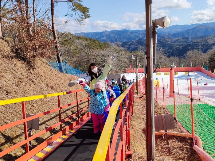 最初は1人で滑っていたお子さまも2回目からはお友だちと滑ったり、競争したり、いろいろな滑り方で楽しみました。1時間たっぷり遊んで(お子さま達はまだまだ滑り足りなかった様子)最後に記念撮影をして、ゲレンデにお別れしました。