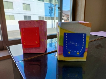 年中さんからのプレゼント。ランドセルが付いたペン立てです!