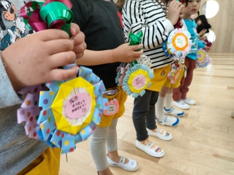 3月16日に桂幼稚園を卒業する年長さんに、「いままでたくさんあそんでくれてありがとう!」の気持ちを込めて作ったプレゼントを渡しました。2歳・年少・年中さん達から心のこもったプレゼントをもらい、満面の笑みの年長さんでした。